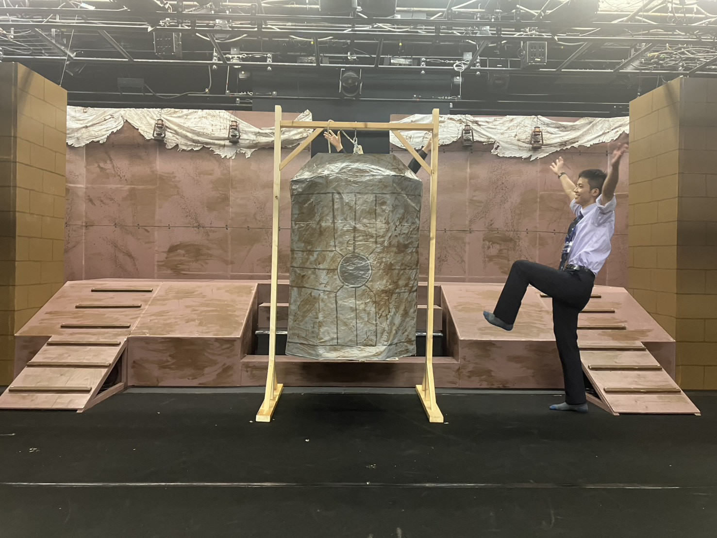 自分が所属する舞台班は、主にステージ上の構造物をつくっています。木材を切ったり釘を打ったりで、気分は大工さんです。初めてでもアットホームな雰囲気で楽しく活動できます。楽しいのでぜひ。